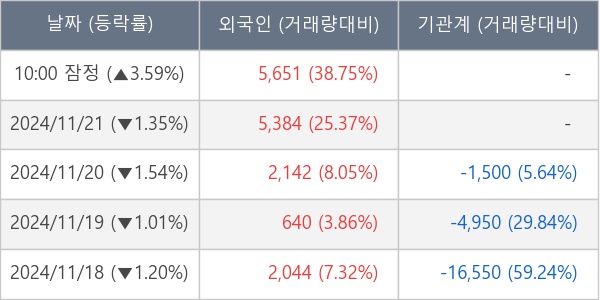 [표] 외국인ㆍ기관 순매매량 (단위 주)