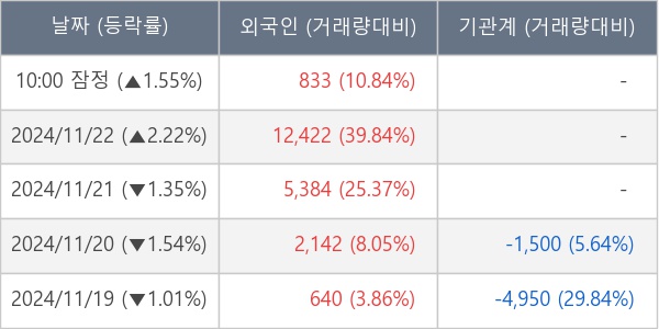 [표] 외국인ㆍ기관 순매매량 (단위 주)
