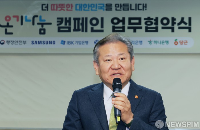 '온기나눔 캠페인 업무 협약식' 인사말하는 이상민 행정안전부 장관