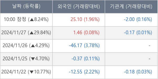 ※ 사모펀드 등 일부 기관의 순매매량은 표시되지 않음