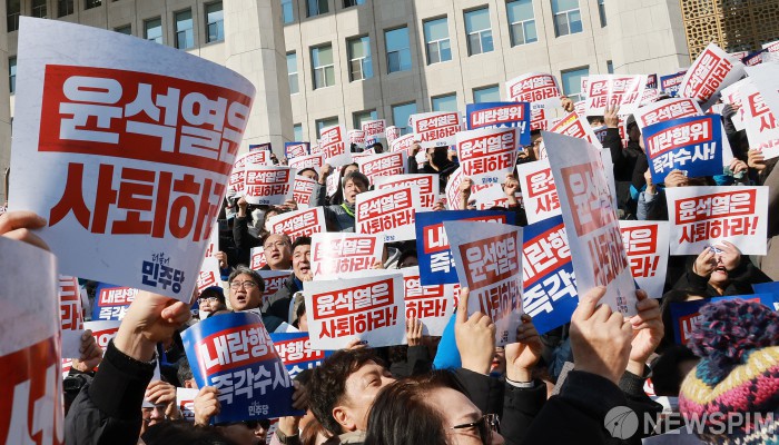 [서울=뉴스핌] 이형석 기자 = 4일 오후 서울 여의도 국회에서 윤석열 대통령 사퇴촉구 탄핵추진 비상시국대회가 열리고 있다. 2024.12.04 leehs@newspim.com