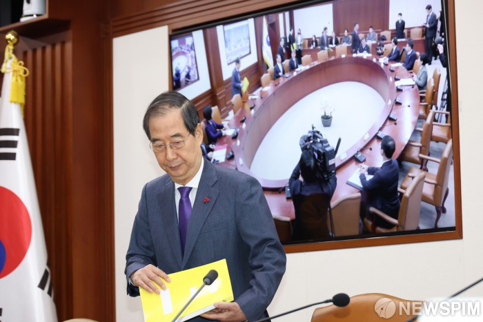 [서울=뉴스핌] 김학선 기자 = 한덕수 국무총리가 5일 정부서울청사에서 열린 국정현안관계장관회의에 참석하고 있다. 2024.12.05 yooksa@newspim.com