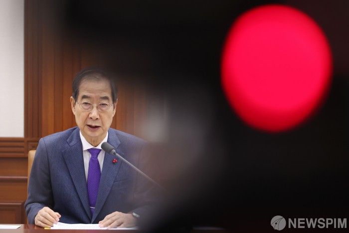 [서울=뉴스핌] 김학선 기자 = 한덕수 국무총리가 5일 정부서울청사에서 열린 국정현안관계장관회의를 주재하며 발언하고 있다. 2024.12.05 yooksa@newspim.com