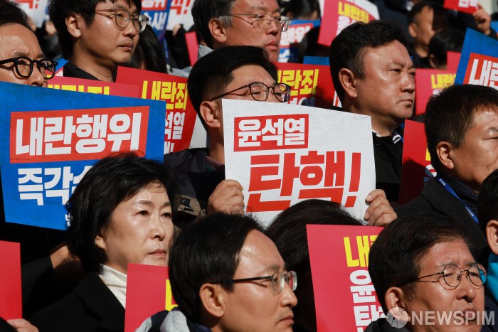 윤석열 대통령 탄핵 위해 피켓 든 야당 및 시민사회