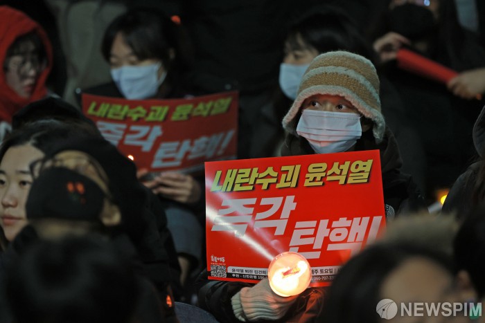 [서울=뉴스핌] 이형석 기자 = 6일 밤 서울 여의도 국회의사당 인근에서 윤석열 대통령 탄핵 촉구 집회가 열리고 있다. 2024.12.06 leehs@newspim.com