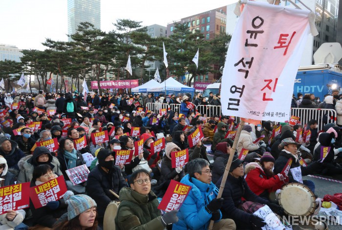 [서울=뉴스핌] 양윤모 기자 = 윤석열 대통령 탄핵소추와 '김건희 특검법' 재표결을 앞둔 7일 오후 여의도 국회 앞에서 윤 대통령 탄핵을 촉구하는 ‘내란죄 윤석열 퇴진! 국민주권 실현! 사회대개혁! 범국민 촛불 대행진’ 집회가 열리고 있다. 2024.12.07 yym58@newspim.com
