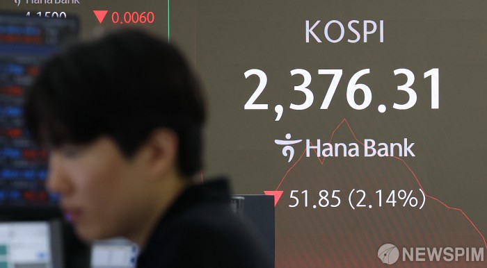 [서울=뉴스핌] 정일구 기자 = 9일 코스피 지수가 전 거래일보다 35.79포인트(1.47%) 하락한 2392.37에 출발했다. 코스닥 지수는 전 거래일대비 11.98포인트(1.81%) 내린 649.35에 시작했다. 달러/원 환율은 전 거래일 종가보다 6.8원 오른 1426.0원에 장을 열었다. 이날 오전 서울 중구 하나은행 딜링룸에서 딜러들이 업무를 보고 있다. 2024.12.09 mironj19@newspim.com