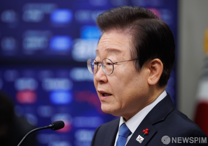 [서울=뉴스핌] 윤창빈 기자 = 이재명 더불어민주당 대표가 13일 오전 서울 여의도 국회에서 윤석열 탄핵 관련 성명을 발표하고 있다. 2024.12.13 pangbin@newspim.com