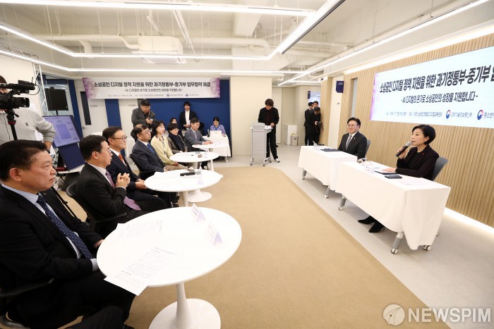 [서울=뉴스핌] 정일구 기자 = 오영주 중소벤처기업부 장관이 17일 오후 서울 마포구 소상공인연합회 디지털교육센터에서 열린 소상공인 디지털 정책 지원을 위한 과기정통부-중기부 업무협약 체결식에서 인사말을 하고 있다. 2024.12.17 mironj19@newspim.com