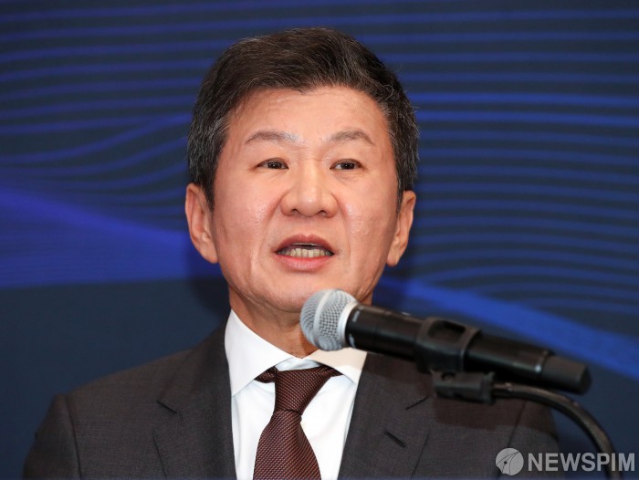 [서울=뉴스핌] 최지환 기자 = 정몽규 대한축구협회장이 19일 오후 서울 종로구 포니정재단빌딩에서 열린 제55대 대한축구협회장 선거출마 기자회견에서 취재진 질문에 답변하고 있다. 2024.12.19 choipix16@newspim.com