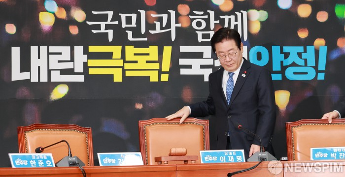[서울=뉴스핌] 이형석 기자 = 이재명 더불어민주당 대표가 20일 오전 서울 여의도 국회에서 열린 최고위원회의에 참석 하고 있다. 2024.12.20 leehs@newspim.com