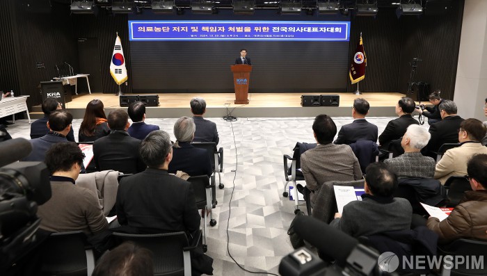 [서울=뉴스핌] 정일구 기자 = 박형욱 대한의사협회 비상대책위원장이 22일 오후 서울 용산구 대한의사협회에서 열린 의료농단 저지 및 책임자 처벌을 위한 전국의사대표자대회에서 대회사를 하고 있다. 2024.12.22 mironj19@newspim.com
