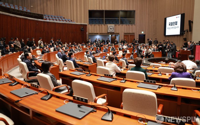 [서울=뉴스핌] 이형석 기자 = 권성동 국민의힘 원내대표가 24일 오전 서울 여의도 국회에서 열린 의원총회에서 발언을 하고 있다. 2024.12.24 leehs@newspim.com