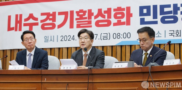[서울=뉴스핌] 윤창빈 기자 = 권성동 국민의힘 대표 권한대행 겸 원내대표가 27일 오전 서울 여의도 국회에서 열린 내수경기활성화 민당정협의회에서 모두발언을 하고 있다. 2024.12.27 pangbin@newspim.com