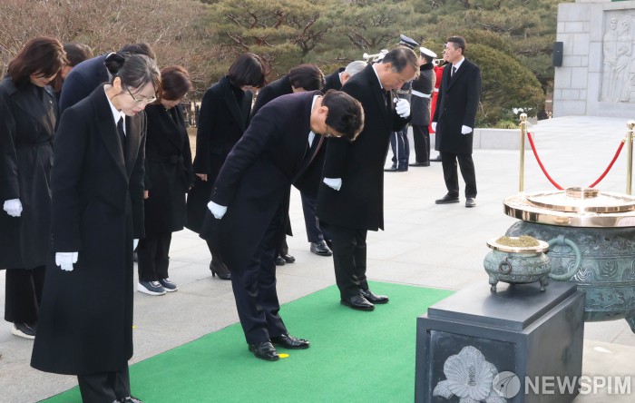 [서울=뉴스핌] 양윤모 기자 = 황운하 조국혁신당 원내대표와 국회의원들이 2025년 을사년(乙巳年) 첫날인 1일 오전 서울 동작구 국립서울현충원을 찾아 현충탑 참배를 하고 있다. 2025.01.01 yym58@newspim.com