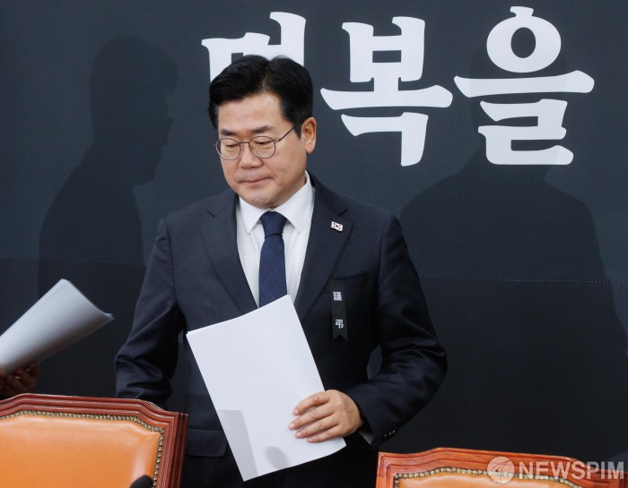 [서울=뉴스핌] 윤창빈 기자 = 박찬대 더불어민주당 원내대표가 2일 오전 서울 여의도 국회에서 열린 원내대책회의에 참석하고 있다. 2025.01.02 pangbin@newspim.com