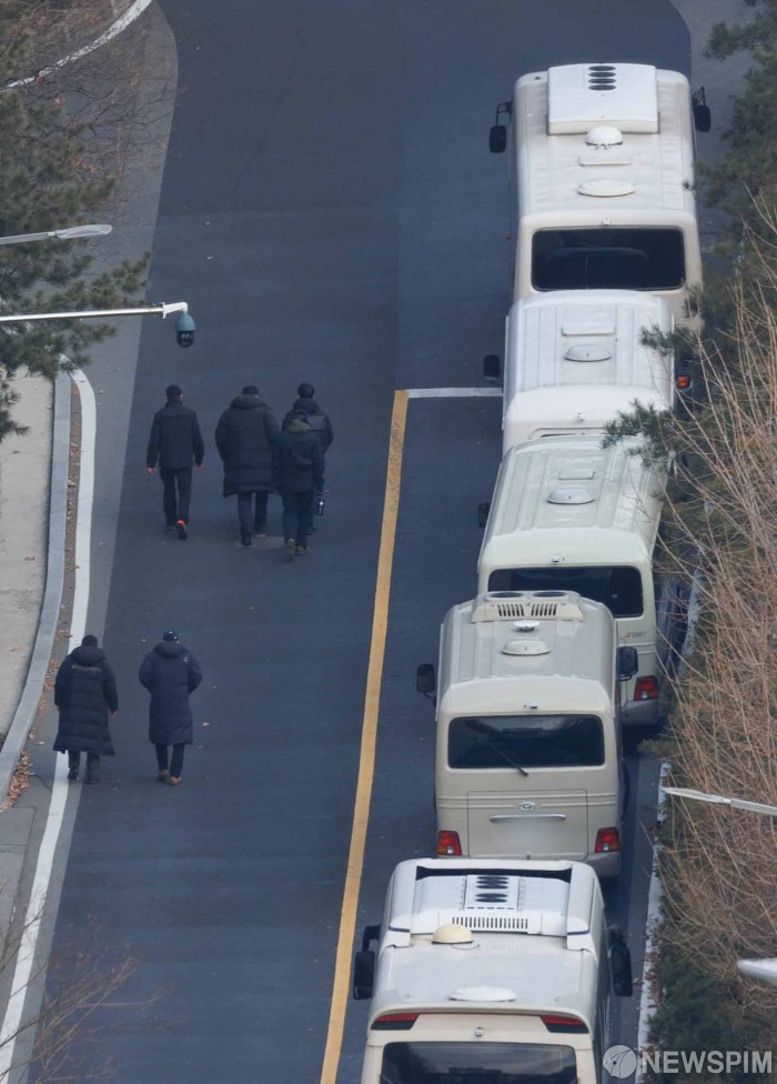 [서울=뉴스핌] 윤창빈 기자 = 고위공직자범죄수사처의 윤석열 대통령 2차 체포영장 집행이 임박한 12일 오후 서울 한남동 관저에서 관계자들이 이동하고 있다. 2025.01.12 pangbin@newspim.com
