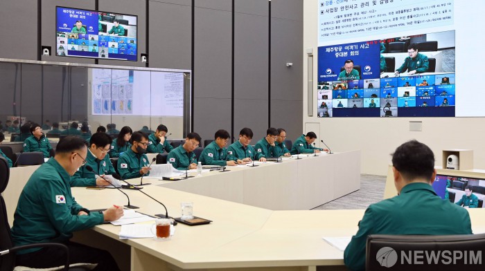 [서울=뉴스핌] 이한경 행정안전부 재난안전관리본부장이 13일 오전 정부세종청사 중앙재난안전상황실에서 열린 제주항공 여객기 사고 제17차 중앙재난안전대책본부 회의를 주재하며 모두발언을 하고 있다.[사진=행정안전부] 2025.01.13 photo@newspim.com