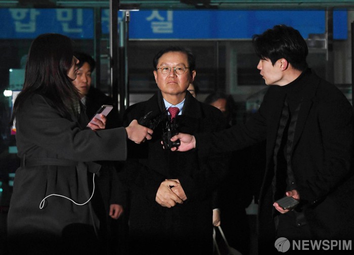 [서울=뉴스핌] 김학선 기자 = 내란 수괴와 직권남용 등의 혐의를 받는 윤석열 대통령의 구속 전 피의자 심문(영장실질심사)이 종료된 18일 오후 서울 마포구 서부지법에서 윤갑근 변호사 등 윤 대통령 변호인들이 법원을 나서고 있다. 2025.01.18 yooksa@newspim.com