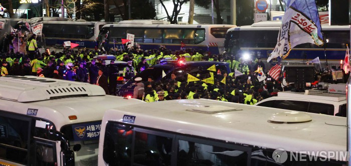 [서울=뉴스핌] 김학선 기자 = 윤석열 대통령이 18일 서울 마포구 서부지방법원에서 열린 구속 전 피의자심문(영장실질심사)을 마친 뒤 법무부 호송차량으로 서울구치소로 돌아가고 있다. 2025.01.18 yooksa@newspim.com