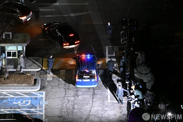 [서울=뉴스핌] 김학선 기자 = 내란 우두머리 혐의를 받고 있는 윤석열 대통령이 18일 오후 서울 서부지방법원에서 열린 구속전 피의자심문을 마친 뒤 법무부 호송차량으로 서울구치소에 돌아가고 있다. 2025.01.18 yooksa@newspim.com