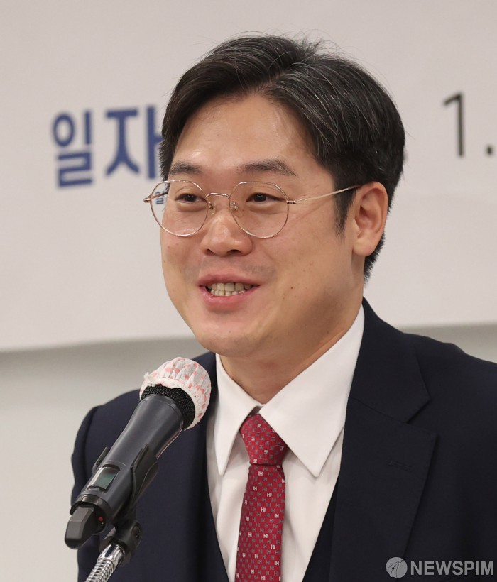 [서울=뉴스핌] 이호형 기자 = 제53대 대한변호사협회 협회장에 당선된 로스쿨 출신 김정욱 변호사가 21일 오전 서울 서초구 대한변협회관에서 당선 소감을 밝히고 있다. 2025.01.21 leemario@newspim.com