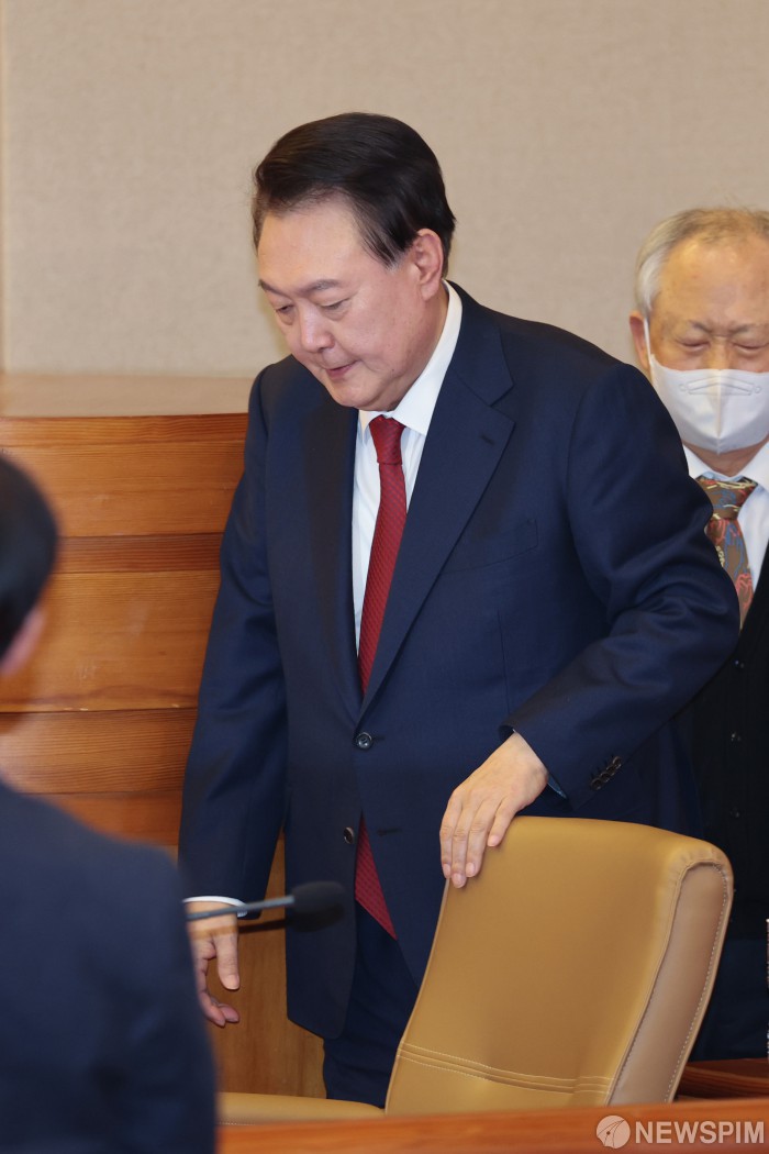 [서울=뉴스핌] 사진공동취재단 = 윤석열 대통령이 21일 오후 서울 종로구 재동 헌법재판소에서 열린 탄핵심판 3차 변론기일에 출석해 피청구인 측에 앉고 있다. 2025.01.21 photo@newspim.com