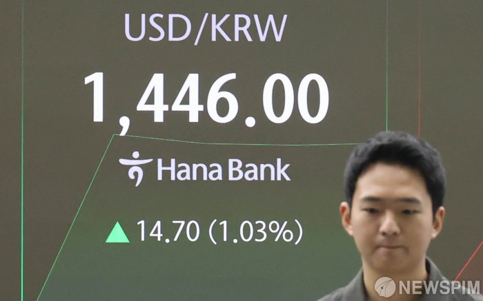 [서울=뉴스핌] 양윤모 기자 = 31일 오전 코스피 지수가 전 거래일 종가보다 31.29포인트(1.23%) 내린 2,505.51로, 코스닥 지수는 3.72포인트(0.50%) 내린 725.02로 거래를 시작했다. 서울 외환시장에서 달러/원 환율은 전 거래일보다 14.70원 오른 1,446.00원에 거래되는 가운데, 서울 중구 하나은행 딜링룸에서 직원들이 업무를 보고 있다. 2025.01.31 yym58@newspim.com