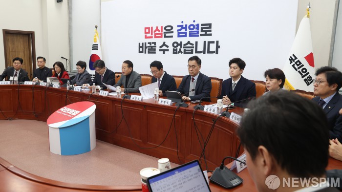 [서울=뉴스핌] 이호형 기자 = 설 연휴 후 권영세 국민의 힘 비상대책위원장이 31일 오전 서울 여의도 국회에서 열린 비상대책위원회의에서 모두발언을 하고 있다. 2025.01.31 leemario@newspim.com