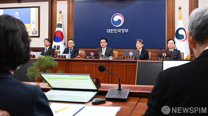 [서울=뉴스핌] 최상목 대통령 권한대행 부총리 겸 기획재정부 장관이 4일 서울 종로구 정부서울청사에서 열린 '제5회 국무회의'를 주재,모두발언을 하고 있다. [사진=기획재정부] 2025.02.04 photo@newspim.com