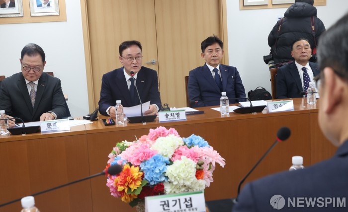 [서울=뉴스핌] 이호형 기자 = 송치영 소상공인연합회장이 7일 오후 서울 종로구 경사노위에서 열린 소상공인연합회 - 경제사회노동위원회 간담회에서 모두 발언을 하고 있다. 2025.02.07 leemario@newspim.com
