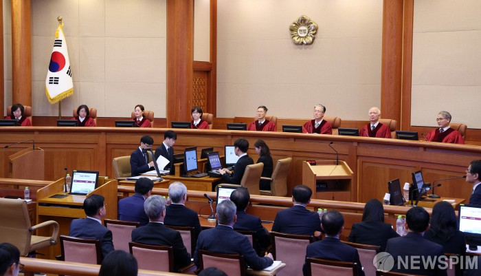 [서울=뉴스핌] 사진공동취재단 = 11일 서울 종로구 헌법재판소에서 열린 윤석열 대통령 탄핵심판 7차 변론기일에 헌법재판관들이 참석해 있다. 2025.02.11 photo@newspim.com
