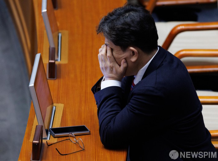 [서울=뉴스핌] 윤창빈 기자 = 권성동 국민의힘 원내대표가 13일 오후 서울 여의도 국회에서 열린 본회의에서 눈을 만지고 있다. 2025.02.13 pangbin@newspim.com