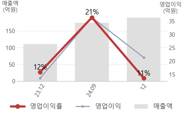 영업이익률을 자세히 살펴보면, 매출은 190억으로 전년동기 대비해서 71% 증가하였고, 영업이익은 21.4억으로 57% 증가하면서 실적은 전반적으로 증가하였는데, 영업이익보다 매출 증가폭이 더 커서 영업이익률이 하락한 것으로 보인다.