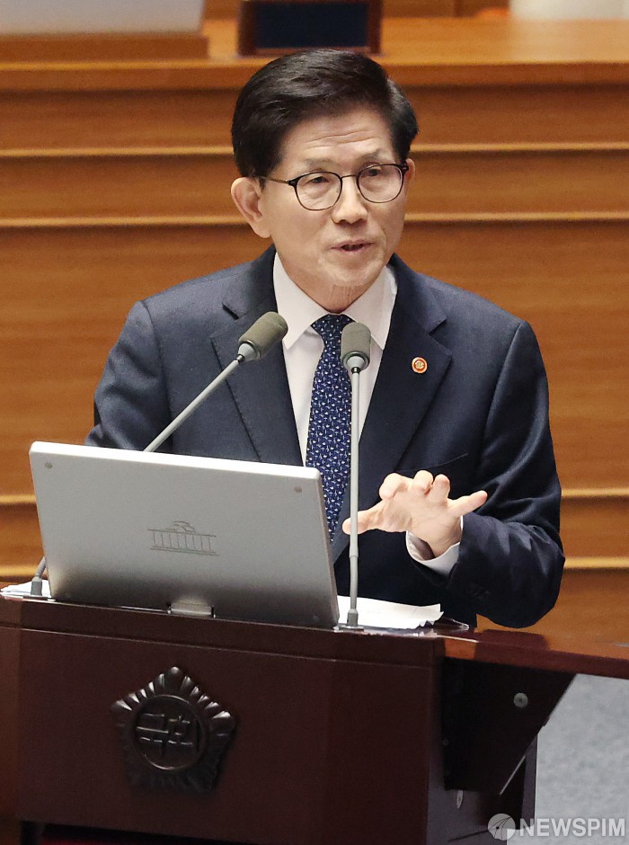 [서울=뉴스핌] 정일구 기자 = 김문수 고용노동부 장관이 14일 오후 서울 여의도 국회에서 열린 제422회 국회(임시회) 제6차 본회의 교육·사회·문화 분야 대정부질문에서 임의자 국민의힘 의원 질의에 답하고 있다. 2025.02.14 mironj19@newspim.com