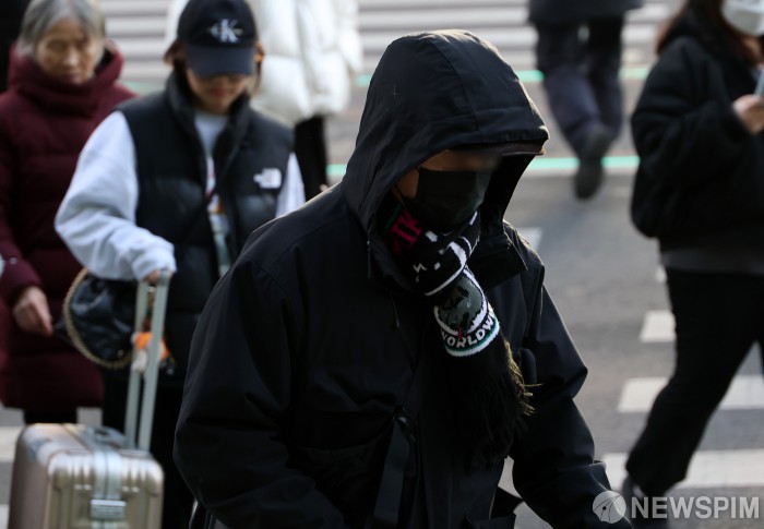 [서울=뉴스핌] 정일구 기자 = 전국 아침 기온이 다시 영하권으로 떨어진 17일 오전 서울 구로구 신도림역 인근에서 두꺼운 옷은 입은 시민들이 출근길 발걸음을 재촉하고 있다. 2025.02.17 mironj19@newspim.com