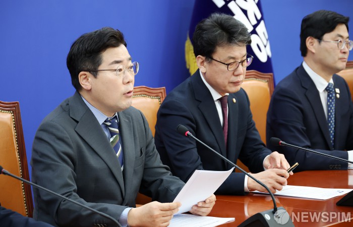 [서울=뉴스핌] 정일구 기자 = 박찬대 더불어민주당 원내대표가 18일 오전 서울 여의도 국회에서 열린 원내대책회의에서 모두발언을 하고 있다. 2025.02.18 mironj19@newspim.com