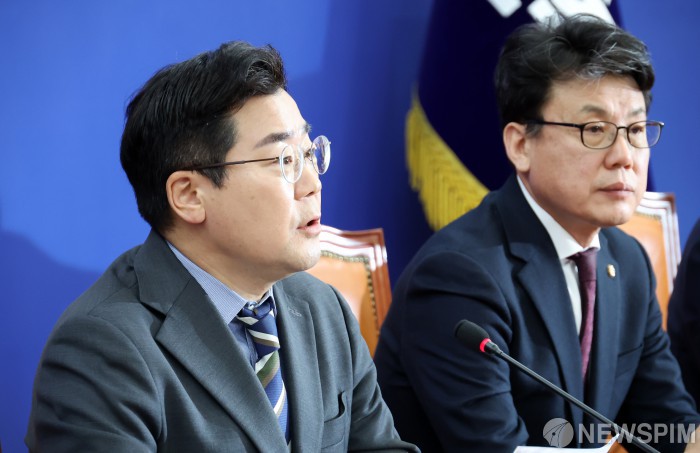 [서울=뉴스핌] 정일구 기자 = 박찬대 더불어민주당 원내대표가 18일 오전 서울 여의도 국회에서 열린 원내대책회의에서 모두발언을 하고 있다. 2025.02.18 mironj19@newspim.com