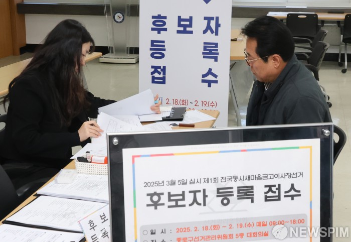 [서울=뉴스핌] 양윤모 기자 = 3월5일 전국적으로 실시되는 제1회 전국동시새마을금고이사장선거 후보자 등록이 시작된 18일 오전 한 후보자가 서울 종로구 창경궁로 서울시선관위에서류를 접수하고 있다. 2025.02.18 yym58@newspim.com