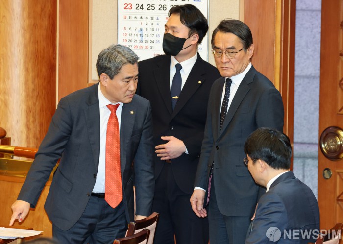 [서울=뉴스핌] 사진공동취재단 = 18일 서울 종로구 헌법재판소에서 열린 '윤석열 대통령 탄핵심판 9차 변론'에서 윤 대통령측 변호인들이 이야기를 나누고 있다. 이날 윤석열 대통령은 법정에 출석하지 않고 돌아갔다. 2025.02.18 photo@newspim.com
