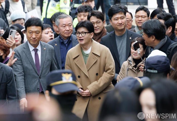 [서울=뉴스핌] 윤창빈 기자 = 한동훈 전 국민의힘 대표가 2일 오후 서울 종로구의 한 극장에서 연극 ‘바다는 비에 젖지 않는다’ 관람을 위해 들어서고 있다. 2025.03.02 pangbin@newspim.com