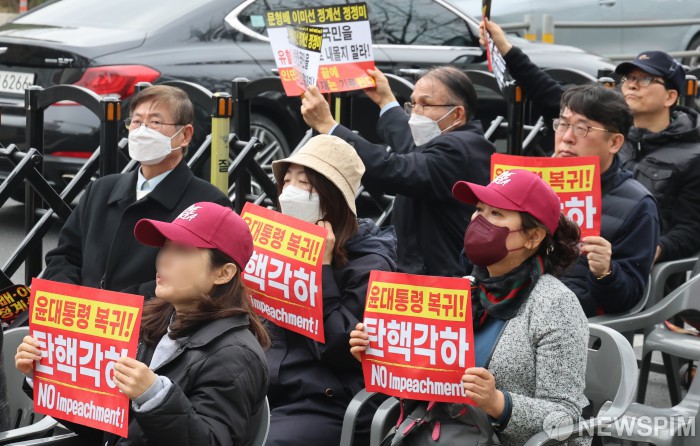 헌재 앞에서 외치는 윤석열 탄핵 반대