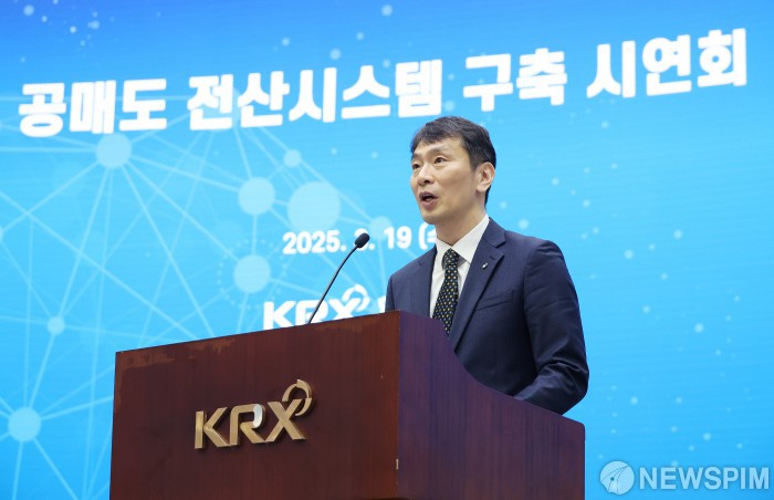 [서울=뉴스핌] 정일구 기자 = 이복현 금융감독원장이 19일 오전 서울 여의도 한국거래소 홍보관에서 열린 공매도 전산시스템 구축 시연회에서 축사를 하고 있다. 2025.03.19 mironj19@newspim.com