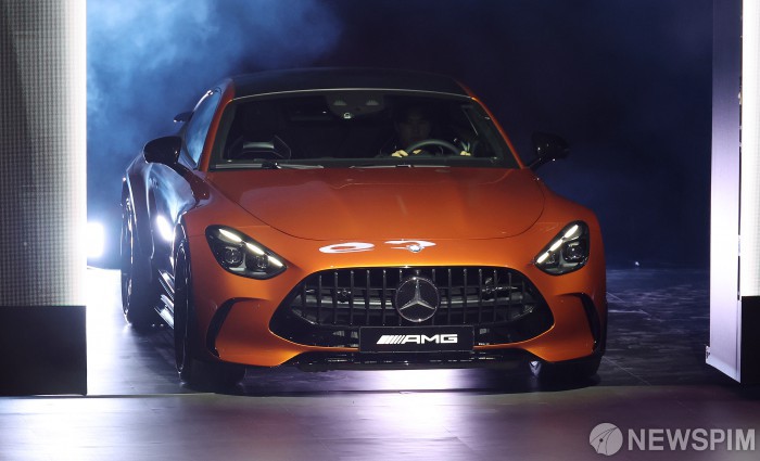 [고양=뉴스핌] 정일구 기자 = 3일 경기 고양시 킨텍스 제1전시장에서 열린 '2025 서울모빌리티쇼' 미디어데이에서 메르세데스-벤츠의 '메르세데스-AMG GT 63 S E 퍼포먼스'가 공개되고 있다. 2025.04.03