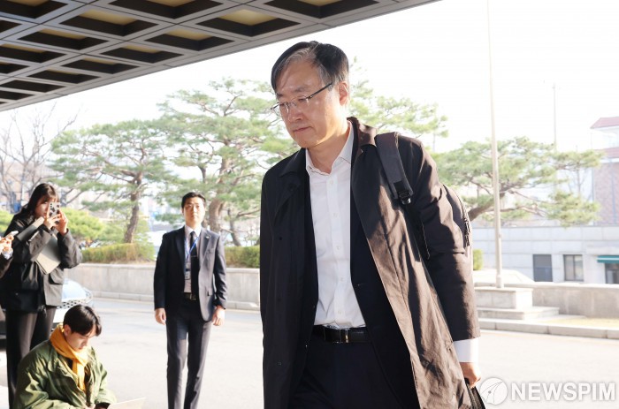 [서울=뉴스핌] 사진공동취재단 = 김형두 헌법재판관이 윤석열 대통령 탄핵심판 선고기일인 4일 오전 서울 종로구 헌법재판소로 출근하고 있다. 2025.04.04 photo@newspim.com