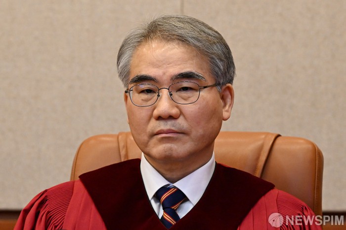 [서울=뉴스핌] 사진공동취재단 = 조한창 재판관이 4일 오전 서울 종로구 헌법재판소 대심판정에서 열린 윤석열 대통령 탄핵심판에 참석해 있다. 2025.04.04 photo@newspim.com