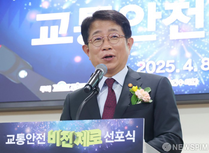 [서울=뉴스핌] 이호형 기자 = 박상우 국토교통부 장관이 8일 오후 서울 여의도 국회의원회관에서 열린 국회교통안전포럼 주최 ‘교통안전 비전 제로 선포식’에서 축사를 하고 있다. 2025.04.08 leemario@newspim.com