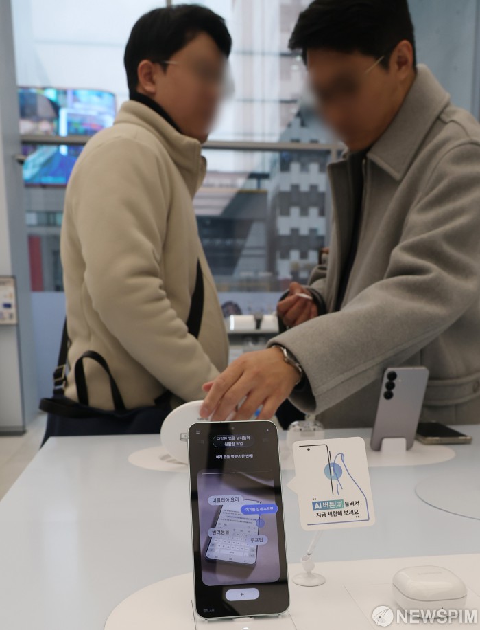 [서울=뉴스핌] 이호형 기자 = 스마트폰 및 전자제품에 대한 상호관세에 관해 지난 13일 트럼프 미 대통령이 자신의 사회관계망서비스(SNS) 트루스소셜에 "지난 금요일 관세 예외를 발표한 적이 없다" 고 밝힌 가운데 14일 서울 서초구 삼성 강남 스토어에서 고객들이 갤럭시 25 제품들을 살펴보고 있다. 하워드 러트닉 미국 상무장관은 컴퓨터, 노트북, 스마트폰은 일시적으로 면제되지만 한 달 정도 후에 다른 형태로 다시 부과될 것이라고 밝혔다. 2025.04.14 leemario@newspim.com