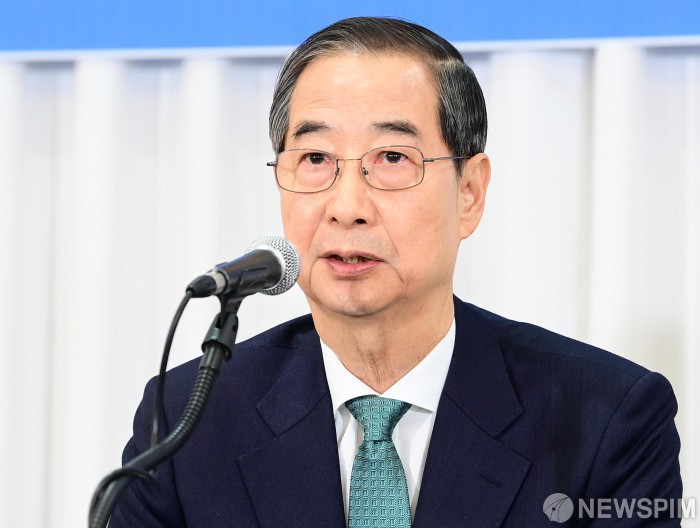 [서울=뉴스핌] 국회사진취재단 = 한덕수 무소속 대통령선거 예비후보가 6일 오전 서울 중구 코리아나 호텔에서 열린 관훈토론회에 참석해 기조연설을 하고 있다. 2025.05.06 photo@newspim.com