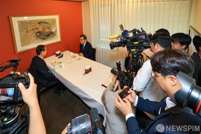 [서울=뉴스핌] 윤창빈 기자 = 한덕수 대선 예비후보, 이낙연 전 국무총리가 6일 오후 서울 중구 달개비에서 오찬 회동을 갖고 있다. 2025.05.06 pangbin@newspim.com
